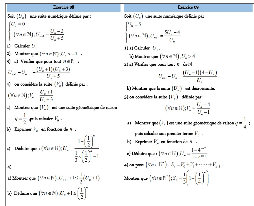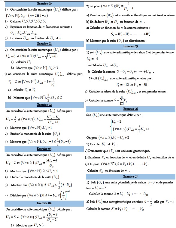 La série d’exercice des suites numériques